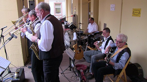 Festmarathon für Partyfans und Halbmarathon für Sportsfreunde Die "Blues Station Ramblers" spielten am Samstagabend auf dem Alten Markt. (Foto: Hubert Richter)Mehr Bilder (Klicken zum Vergrößern):