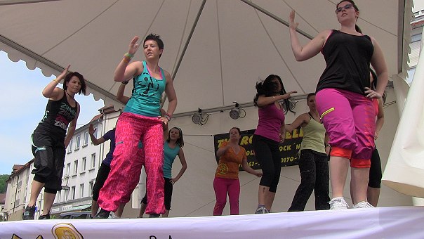 Festmarathon für Partyfans und Halbmarathon für Sportsfreunde Zumba-Vorführung am Sonntagnachmittag auf dem Neuen Markt. (Foto: Hubert Richter)Mehr Bilder (Klicken zum Vergrößern):
