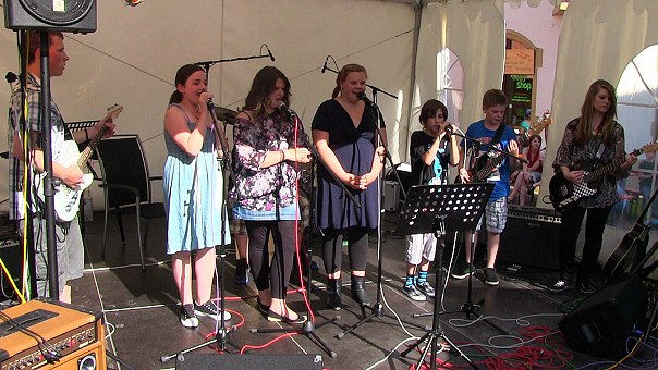 Festmarathon für Partyfans und Halbmarathon für Sportsfreunde Die Rockband der Werkrealschule am Sonntagnachmittag auf dem Lindenplatz. (Foto: Hubert Richter)Mehr Bilder (Klicken zum Vergrößern):