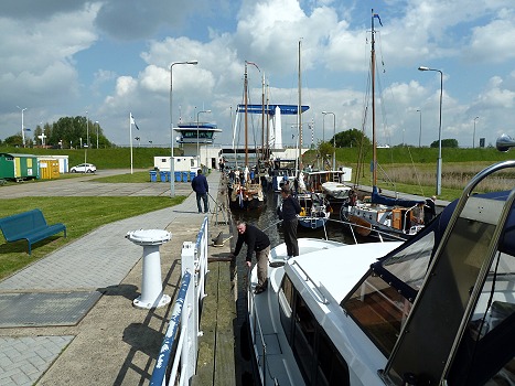 Das Wetter am Mittwoch und die weiteren Vorhersagen waren ungünstig. Aus diesem Grund musste von der geplanten Route direkt über das Markermeer abgewichen werden. Für die Rückfahrt wurde fast die gleiche Strecke ausgewählt, die man auf der Herfahrt bewältigt hatte. Nach diversen technischen Problemen auf Boot zwei konnte man nach gut sechs Stunden Fahrzeit Elburg erreichen.