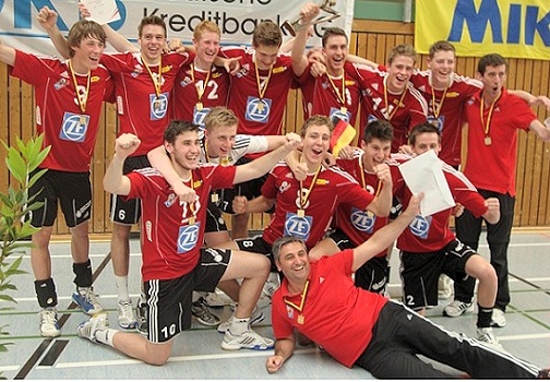 Philipp Sigmund und sein Team sind Deutscher Meister Philipp Sigmund (2. v. li. stehend). (Foto: privat) (bro) (ms) Der U20 Nachwuchs des VFB Friedrichshafen siegte am 20. Mai nach spannendem Turnierverlauf bei den Deutschen Meisterschaften im Volleyball in Salzgitter. Philipp Sigmund, der frühere Jugendspieler des TV Eberbach, welcher seid Herbst 2009 in Friedrichshafen bei den "VolleyYoungStars" am Stützpunkt des Deutschen Volleyballverbandes trainiert und spielt, konnte bei seinen ersten Deutschen Meisterschaften mit dem Titel in der Tasche nach Hause fahren.