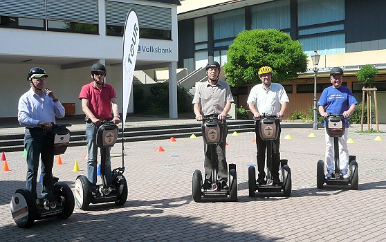 Sightseeing einmal anders (Foto: privat)(bro) (hsl) Erkunden kann man Hirschhorn und seine Umgebung auf eine ganz neue und außergewöhnliche Art und Weise. Mit dem Segway, einem computerbalancierten Roller, wird man in Hirschhorn mit den Stadtführern professionell geleitet. Einzige Bedingung, man muss mindestens 15 Jahre alt und im Besitz eines Mofaführerscheins sein.