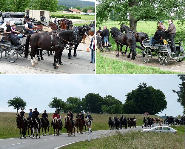 Mit Haferantrieb durch die Natur (Fotos: privat)(bro) (rau) Das Wetter hätte am vergangenen Donnerstag nicht besser sein können. So fanden sich wieder Reiter und Kutschenfahrer aller Stile und Pferderassen an der Reithalle in der Stried ein, um die Natur gemeinsam mit umweltfreundlichem „Haferantrieb“ zu erleben.