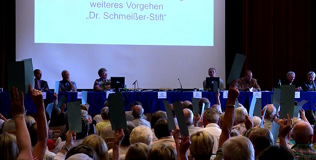 Kommissionen sollen prüfen und finden (Foto: Hubert Richter)(hr) In zwei außerordentlichen öffentlichen Mitgliederversammlungen des Vereins Stiftung Altersheim Eberbach e.V. ging es heute in der Stadthalle um das weitere Vorgehen in Sachen Dr.-Schmeißer-Stift.