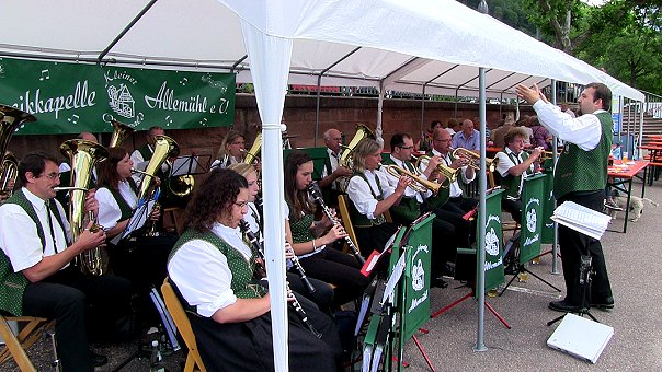 Aktionen und Unterhaltung am Fluss Die Musikkapelle Allemühl spielte am Eberbacher Neckarlauer bei den Reservisten. (Foto: Hubert Richter)Mehr Bilder (Klicken zum Vergrößern):