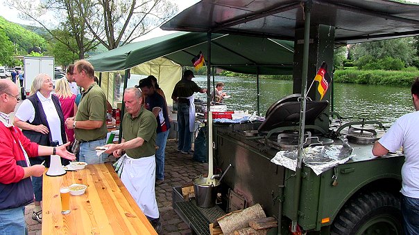 Aktionen und Unterhaltung am Fluss Verpflegung gab es in Eberbach aus der Feldküche der Reservisten. (Foto: Hubert Richter)Mehr Bilder (Klicken zum Vergrößern):