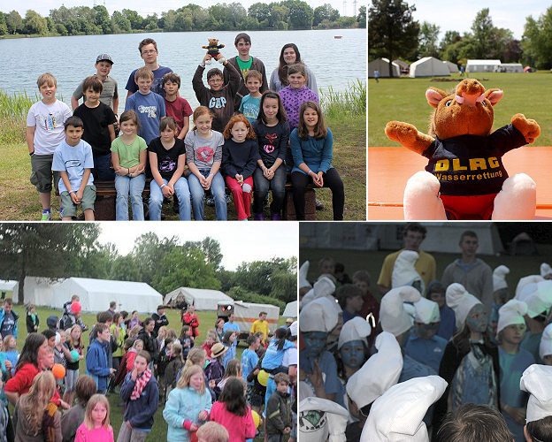 Auf dem Programm standen Bewegung und Spannung bei dem schon nahezu traditionellen Völkerballturnier oder der Nachtwanderung rund um das Blausee-Gelände. Der Freitag war ganztägig für die zahlreichen Workshops wie Batiken, Tonschlümpfe-Basteln oder das Erstellen einer Schlumpf-Pinnwand reserviert, wobei der Abend bei Stockbrot am Lagerfeuer einen schönen Ausklang fand. Bei der Lagerolympiade, welche mit Bogenschießen, Slackline, Badewannefahren und vielem mehr einherging, konnten die Nachwuchs-Wasserretter ihr Geschick und Können beweisen und bei der anschließenden Siegerehrung ihre wohl verdienten Preise entgegennehmen. Auch bei der Schlumpfenparty am letzten Abend feierte die Eberbacher Delegation gemeinsam mit den übrigen Kindern und Betreuern des Bezirks den Abschluss eines gelungenen Kinderzeltlagers, bevor man am Sonntag das Abbauen der Zelte und die Abreise in Angriff nahm.