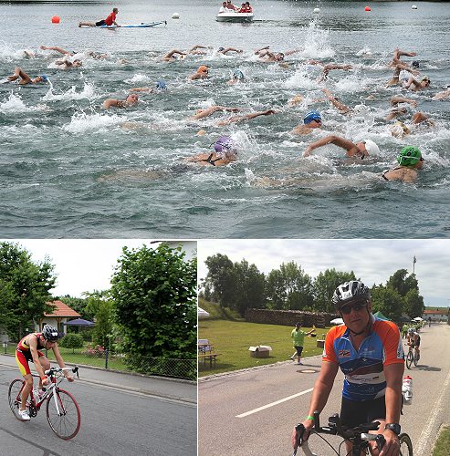Erfolgreiches Wettkampfwochenende für die TVE Athleten Oben: Massenstart in Heddesheim Freiwasserschwimmen. Unten links: Amadeo Fania. Unten rechts: Andreas Kohler. (Fotos: privat)(bro) (wh) Bereits zum zehnten Mal fand am vergangenen Wochenende der Dupli Color Neckar-Fährle-Triathlon in Haßmersheim statt. Während die Eberbacher Triathleten Bettina Bracht, Amadeo Fania und Yannick Wörtz daran teilnahmen, lief Andreas Kohler den Ironman in Regensburg. André Hofherr und Isabell Fix gingen beim Freiwasserschimmen in Heddesheim an den Start.
