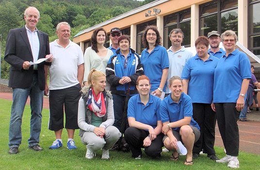 Während der Wettkampfpause bot Jongleur Klaus Müller-Blask an, das eine oder andere Kunststückchen auszuprobieren und sich die Zeit bis zum Beginn des Mannschaftswettkampfes zu vertreiben, was großen Zuspruch fand. Bürgermeister Peter Kirchesch und der Vorsitzende des SV Zwingenberg Michael Gramlich lobten die gute Organisation, das ideale Engagement der ehrenamtlichen Übungsleiter/innen und Betreuer/innen. Am Nachmittag standen der Mannschaftswettkampf sowie die Hindernisstaffel auf dem Programm - mit 32 Mannschaften. Die Siegerehrung, bei der alle Kinder eine Urkunde und eine Medaille erhielten, fand dann bei strahlendem Sonnenschein auf dem Sportplatz statt.
