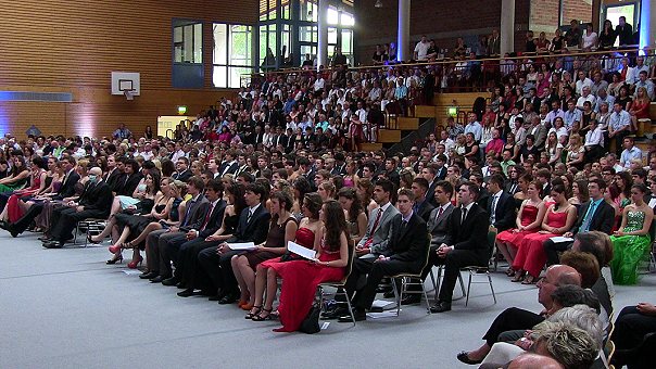 Video ansehen(hr) 160 Abiturienten des Hohenstaufen-Gymnasiums Eberbach (wir berichteten) erhielten gestern Abend ihre Abschlusszeugnisse. Die Feier fand wegen des Doppeljahrgangs aus G8 und G9 nicht wie gewohnt in der Stadthalle, sondern in der Hohenstaufen-Sporthalle statt, die aber die Feuerprobe mit Bravour bestand.