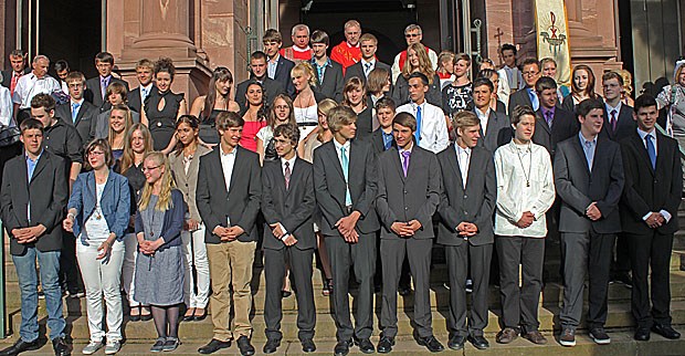 Am Samstagabend wurden 43 Jugendliche aus den Eberbacher Pfarrgemeinden St. Johannes Nepomuk und St. Josef sowie der Friedrichsdorfer Filialgemeinde St. Maria Rosenkranzkönigin gefirmt. Den Firmsegen spendete, in Vertretung für den Erzischof in Freiburg, Ordinariatsrat Stephan Ocker. Er feierte zusammen mit dem Eberbacher Stadtpfarrer und Leiter der Seelsorgeeinheit Mathias Stößer, Diakon Joachim Szendzielorz, den Firmlingen,ihren Firmpaten, Familienangehörigen und zahlreichen Gästen eine heilige Messe in der Pfarrkirche St. Johannes Nepomuk. Für den feierlichen musikalischen Rahmen sorgte der Singkreis mit Leiter Bezirkskantor Godehard Weithoff.