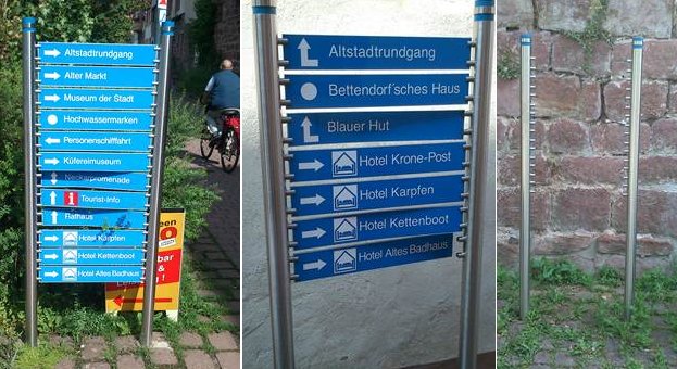 Eingetreten wurden Schilder am Neckarlauer und unterhalb des Hotels Krone-Post. Die Stadtverwaltung hat heute bei der Polizei Anzeige erstattet. Der Schaden wird auf insgesamt 2.100 Euro geschätzt.
