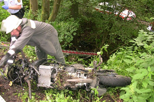 Bei Schönbrunn gegen Leitplanke geprallt (Foto: Claudia Richter)(cr) Vermutlich ein Fahrfehler wurde einem jungen Motorradfahrer heute Morgen auf der L 595 zwischen Schönbrunn und Allemühl zum tödlichen Verhängnis.