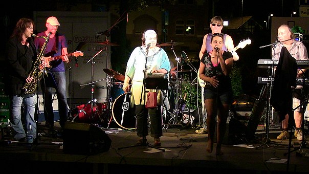 Foto-Werbeaktion mit Wasserbällen gestartet Livemusik von "Us2U" am Bahnhofsplatz. (Foto: Hubert Richter)Mehr Bilder (Klicken zum Vergrößern):