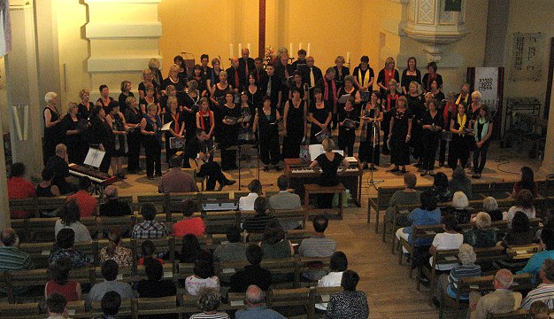 Bei dem Lied „23rd inspired“, bei dessen Komposition Beigel durch den Psalm 23 inspiriert wurde, ging der Chor singend durch die Kirche und beschwor das Publikum dem Satan zu widerstehen. Nun war der Funke restlos übergesprungen und das Publikum dankte Roland Beigel, den beiden Chören und den Musikern mit viel Applaus und stehenden Ovationen für ein Konzert der besonderen Art.