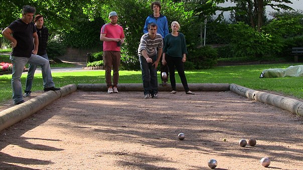 Die Stadtverwaltung hatte zu der Neuauflage des im letzten Jahr erstmals durchgeführten Turniers (wir berichteten) eingeladen. Unter den zehn teilnehmenden Mannschaften mit jeweils drei Spielern war auch wieder der EBERBACH-CHANNEL mit zwei Teams. Mit jeweils auf 30 Minuten begrenzten Spielen starteten ab 14 Uhr die Vorrunden. Weil ein gemeldetes Team nicht erschienen war, sprang spontan eine Gruppe von Gästen aus Hirschhorn ein, die "stilecht" mit einem Citroen 11CV aus dem Baujahr 1955 angereist waren. Teilnehmer und Zuschauer nutzten trotz zwischenzeitlichem Regenguss das Event zu ausgiebigem Picknick und machten klar, dass "Savoir vivre" auch am Neckar zuhause ist.