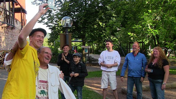 Die Stadtverwaltung hatte zu der Neuauflage des im letzten Jahr erstmals durchgeführten Turniers (wir berichteten) eingeladen. Unter den zehn teilnehmenden Mannschaften mit jeweils drei Spielern war auch wieder der EBERBACH-CHANNEL mit zwei Teams. Mit jeweils auf 30 Minuten begrenzten Spielen starteten ab 14 Uhr die Vorrunden. Weil ein gemeldetes Team nicht erschienen war, sprang spontan eine Gruppe von Gästen aus Hirschhorn ein, die "stilecht" mit einem Citroen 11CV aus dem Baujahr 1955 angereist waren. Teilnehmer und Zuschauer nutzten trotz zwischenzeitlichem Regenguss das Event zu ausgiebigem Picknick und machten klar, dass "Savoir vivre" auch am Neckar zuhause ist.
