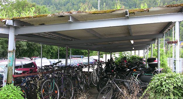 Räder sollen schöner parken (Foto: Claudia Richter)(hr) Der marode Fahrradunterstand am Eberbacher Bahnhof soll saniert werden. Das beschloss heute der Eberbacher Gemeinderat mit großer Mehrheit.