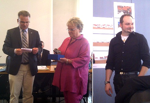 Stadträtin verabschiedet - Kandidatenvorstellung zur Bürgermeisterwahl beschlossen Links Ulrike Kraus bei der Verabschiedung durch Bürgermeister Bernhard Martin, rechts Nachfolger Christian Beisel. (Fotos: Hubert Richter)(hr) Ulrike Kraus, die aus familiären Gründen ihr Ausscheiden aus dem Gemeinderat beantragt hatte, wurde heute im Rahmen der öffentlichen Sitzung im Ratssaal offiziell verabschiedet.