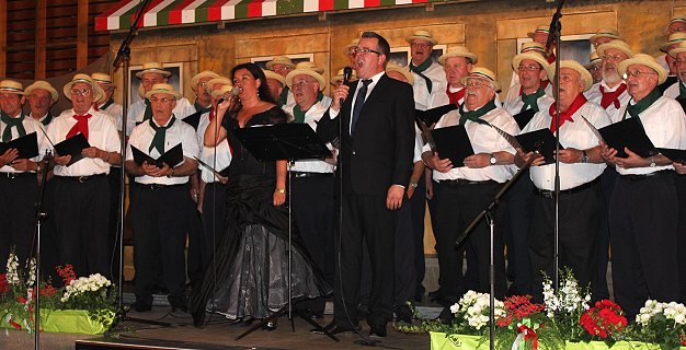 Im zweiten Teil wurde die italienische Piazza immer mehr zur Opernbühne mit Stücken aus "Nabucco" (Gefangenenchor) oder "La Traviata" (Trinklied). Den Abschluss bildete der MGV Liederkranz zusammen mit den Solisten beim Chianti-Lied und der bekannten neapolitanischen Weise "Funiculi, Funicula".