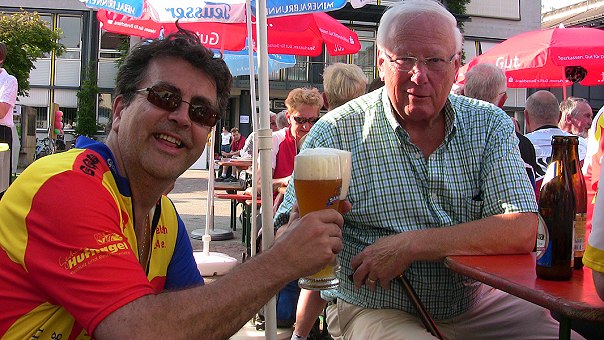 Großes Fest am Etappenziel Leopoldsplatz V.l. der Kreistagsvorsitzende Rüdiger Holschuh und Ex-Landrat Horst Schnur (beide Odenwaldkreis). (Foto: Claudia Richter)Mehr Bilder (Klicken zum Vergrößern):