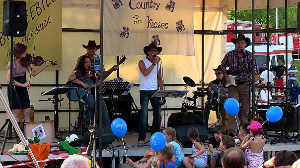 Akteure in Hirschhorn auf der mobilen Bühne des RNF-Actiontrucks waren neben Bürgermeister Rainer Sens vor allem Repräsentanten der Hirschhorner Ritter sowie Jürgen Waibel alias "Ritter Friedrich". Sens musste nach dem Fassbieranstich noch das Bürgermeisterquiz lösen, bei dem er sich aber von drei "schlauen" Hirschhornern unterstützen lassen konnte. "Ritter Friedrich" durfte beweisen, wie gut er sich in der Metropolregion auskennt, und ein Ensemble der Hirschhorner Ritter intonierte eine Hirschhorn-Hymne zur Melodie von "Country Roads". Für Abwechslung sorgten drei Rapper mit einer Hip-Hop-Einlage. Auf der separaten Musikbühne boten zwischendurch die Folkgruppe "Heebie Jeebies" und die Western-Band "Country Kisses" musikalische Unterhaltung. Die Stadtwette, in der es galt, mindestens 30 Hirschhorner in historischen Gewändern auf die Bühne zu bringen, wurde mit Bravour gewonnen. Einen großen Präsentkorb durfte Heike Schön-Leucht von der Tourist-Info in Empfang nehmen.