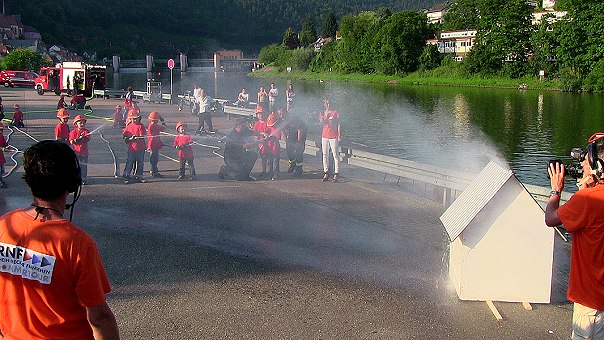 Viel spielte sich auch auf dem Platz vor den Bühnen ab. Dort wurde ein Segway-Rennen veranstaltet, und die kleinen Helfer der Jugendfeuerwehr zeigten in einer Schauübung, wie schnell sie ein brennendes Häuschen löschen können. Dass die Feuerwehr Hirschhorn nicht nur mit Löschwasser, sondern auch mit Neckarwasser bestens umgehen kann, wurde in einem Kanurennen deutlich, das die Floriansjünger haushoch gewannen.