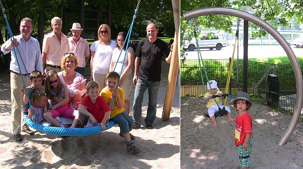 Neben der Nestschaukel gibt es auf dem Spielplatz an der Zwingerstraße noch eine weitere Neuerung: Die Stadt ersetzte die alte Babyschaukel gegen ein neues Gerät für rund 1.000 Euro (unser Bild rechts).