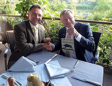 Distrikt Governor Rolf Mayrhofer zu Gast in Eberbach (Foto: privat)(bro) (bs) Der RC Eberbach ist einer von 80 Rotary Clubs im Distrikt 1860, einem der 14 Distrikte, in die Rotary Deutschland organisatorisch aufgeteilt ist. Über 4.000 Rotarier haben sich in diesem Distrikt 1860 zu selbstlosem Dienen verpflichtet. Alle 80 Clubs wird der neue Governor in den nächsten Wochen besuchen. In Eberbach war er bereits in der vergangenen Woche zu Besuch, um die Botschaft des Weltpräsidenten Sakuji Tanaka aus Japan den Mitgliedern zu erklären und sie mit den Vorhaben im Distrikt vertraut zu machen.