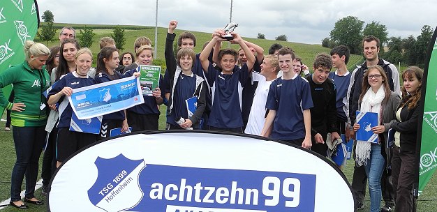 Spaß an der Bewegung stand im Mittelpunkt des AOK-Gesundheitstags für 8. und 9. Klassen. Auf dem Sportgelände des FC Zuzenhausen konnten sich 228 Jungs und Mädels von sechs Realschulen aus der Region am vergangenen Freitag, 27. Juli, so richtig austoben. Unter dem Motto „Mach mit – kick dich fit“ stellten sie zehn Mannschaften, die in einem Fußball-Kleinfeld-Turnier gegeneinander antraten. Die Schüler der Klassen, die nicht kickten, waren als Fanclub mit dabei und nutzten die Action-Stationen außerhalb des Spielfelds: ein Mega-Menschen-Kicker, ein Fußball-Rodeo und eine Riesen-Fußball-Schuss-Anlage.