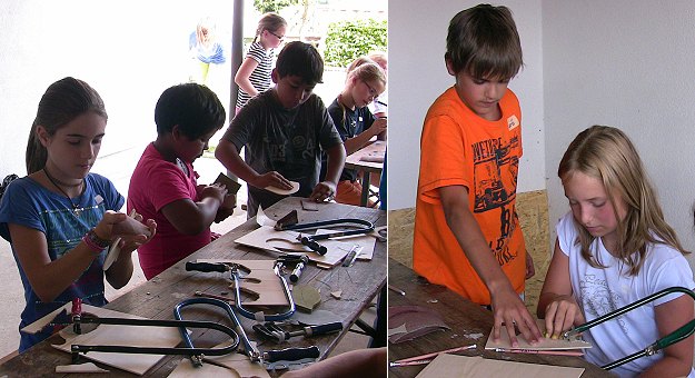 Eberbacher Ferienspaß bei Kenia-Hilfeverein (Fotos: Claudia Richter)(cr) Handwerklich ging es gestern beim Eberbacher Ferienspaßprogramm zu. Über 15 Kinder stellten beim Verein "Hände für Kenia" bunte Figuren aus Sperrholz her.
