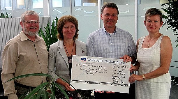 Nachdem der OTK-Vorsitzende Harald Siefert zusammen mit seiner Frau Natascha das Projekt dem Eberbacher Rotary Club vor einigen Wochen vorgestellt hatte, war es ein fast selbstverständlicher Service der Rotarier, den Kauf des Backofens für die Bäckerei mit 2.000 Euro zu unterstützen. Für die Scheckübergabe bot sich eine günstige Gelegenheit, als die Geschäftsführerin der Einrichtung in Mosyr, Zhanna Schestovetz, vor einigen Tagen in Eberbach weilte, um mit OTK organisatorische Themen zu erörtern.