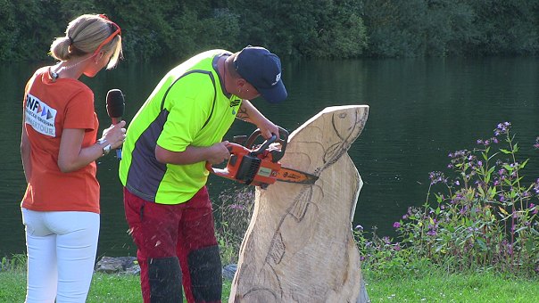 Bunte Sommertour-Show brachte 108 Sonderpunkte Motorsägenkünstler Michael Wieder bei der Arbeit. (Foto: Hubert Richter)Mehr Bilder (Klicken zum Vergrößern):