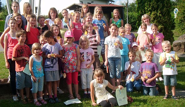 Angebote auch im fünften Jahr gut genutzt Bei der Ferienkirche-Olympiade gab es für alle Goldmedaillen. (Foto: privat)(hr) (sz) Mit einem lebhaften Familiengottesdienst ging am vergangenen Sonntag die diesjährige Ferienkirche im Feriendorf Waldkatzenbach zu Ende, die seit 2008 als Nachfolgeveranstaltung der Kirche Unterwegs (Ev. Landeskirche Baden) von ehrenamtlichen Mitarbeitern verschiedener Waldbrunner Kirchengemeinden in einem ökumenischen Team geplant, vorbereitet und durchgeführt wird.