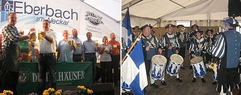 Zuvor marschierte in gewohnter Weise der Fanfarenzug der Stadt Eberbach unter der Leitung von Jochen Benkwitz mit Pauken und Trompeten ins große Festzelt ein und Bürgermeister Bernhard Martin begrüßte die anwesenden Gäste, unter ihnen der Bundestagsabgeordnete Dr. Stephan Harbarth, die Landtagsabgeordneten Elke Brunnemer und Thomas Funk, Ehrenbürger Horst Schlesinger, Bürgermeister a.D. Roland Schilling, die amtierenden Bürgermeisterkollegen Thomas Ihrig aus Hesseneck und Peter Reichert aus Neidenstein sowie zahlreiche Mitglieder des Eberbacher Gemeinderats. Die weiteste Anreise zum diesjährigen Kuckucksmarkt hatte sicherlich Victor Richard, Stadtrat aus der amerikanischen Partnerstadt Ephrata, Pennsylvania, der zurzeit eine Deutschlandreise macht und Gast von Familie Karl Link ist.