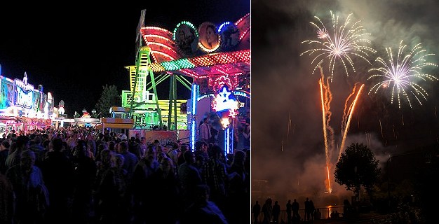 Verbessertes Sicherheitskonzept zeigte Wirkung (Fotos: Broghammer / Alexander Beck)(hr) Nach einem gelungenen Brillantfeuerwerk mit Musikuntermalung klang gestern Abend der 77. Eberbacher Kuckucksmarkt auf dem Festgelände in der Au allmählich aus. Nach fünf Tagen mit durchwachsenem Wetter wurde es zwischen den Buden und Fahrgeschäften am letzten Abend noch einmal so richtig voll.
