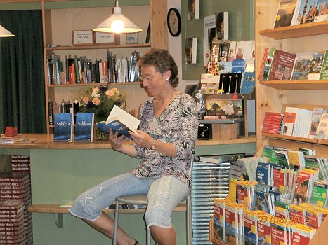Susanne Esch las aus dem Buch Solifera (Foto: privat)(bro) (ce) Die Hobbyautorin Susanne Esch besuchte am 27. August erstmals Sigmunds Buchladen und stellte ihr Buch "Solifera" Sonnenbringerin vor. Die 45-jährige Autorin, geboren und wohnhaft in Höchst bei Frankfurt am Main, las mit viel Engagement und Herzlichkeit aus ihrem Buch vor.