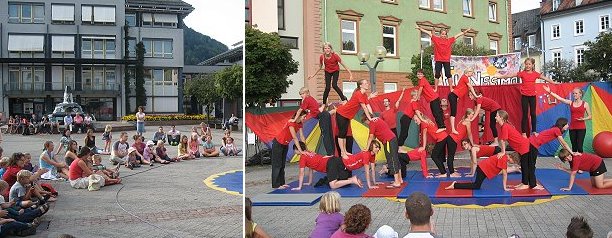 Junge Freizeit-Zirkus-Artisten zeigten ihr Können (Fotos: Nicole Kolbe)(ko) Die Sommerferien-Freizeit des Evangelischen Kinder- und Jugendwerks Heidelberg ist zurzeit wieder auf Tour und gastierte am gestrigen Montag mit ihrem „Zirkus Funissimo“ auf dem Leopoldsplatz in Eberbach.
