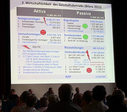 Weil die Prüfungskommission mit ihrer Arbeit noch nicht fertig ist, gilt der von Doris Popp vorgestellte Rechenschaftsbericht für 2011 nur als vorläufig und wurde heute ebenso wenig beschlossen wie der Wirtschaftsplan für 2012. Folgerichtig kam es auch nicht zu einer Entlastung des Vorstands. Spätestens Ende September sollen die offenen Punkte in einer weiteren Mitgliederversammlung behandelt werden.