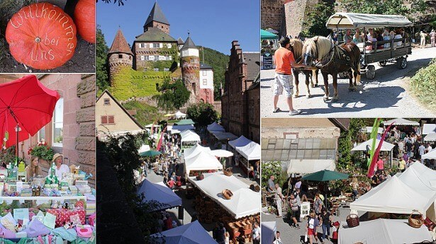 Das Angebot im und um den Schlosshof ist vielfältig, die Aussteller und Verkäufer haben sich große Mühe mit der Dekoration ihrer Stände gegeben. Gekaufte Pflanzen oder größere Deko- Artikel kann man sich vom Bringservice kostenlos zu seinem Fahrzeug transportieren lassen. Im Schlossgarten und auf der Terrasse sorgen die Helfer des DRK Mosbach für das leibliche Wohl.