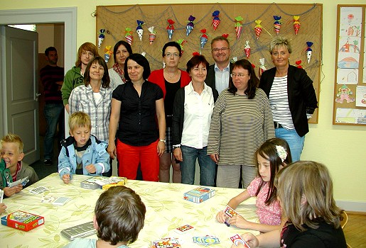 Erweiterung des Angebots im Schülerhort und in der Randzeitbetreuung Bürgermeister Bernhard Martin mit dem gesamten Team des Schülerhorts und der Randzeitbetreuung: Marlon Bolter, Martina Ehmann, Sabina Hornung, Martina Lehmkühler, Heidi Stumpf, Ewa Karasek, Bürgermeister Bernhard Martin, Angela Gyufko und Anke Steck (v.l.). (Foto: privat)(bro) (stve) Seit vielen Jahren bietet die Stadt Eberbach im Schülerhort eine Ganztagesbetreuung sowie auch eine Randzeitbetreuung an. Beide Betreuungsangebote waren im vergangenen Schuljahr mit jeweils 30 bis 35 Kindern belegt. Aufgrund der großen Nachfrage an Betreuungsplätzen hat sich die Stadt Eberbach entschieden, die Betreuungsangebote zu erweitern, damit alle angemeldeten Kinder aufgenommen werden können.