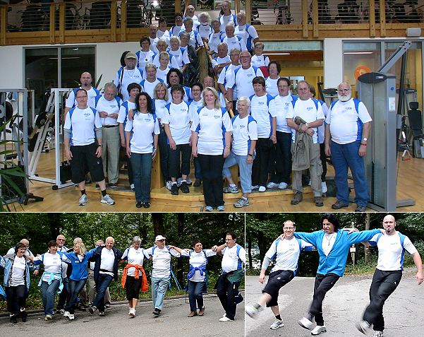 Atro Provita bietet unter der Markenbezeichnung "Gelastin" Gelenkschutzpräparate an und verfügt mit Costa Cordalis über einen prominenten Werber für die Produkte. Dass er körperlich absolut fit ist, bewies der Sänger am Mittwochvormittag im Ittertal bei einer Walking Tour, zu der außerdem über 40 Damen und Herren aus dem süddeutschen Raum eingeladen waren. Die sportliche Gruppe traf sich am Morgen im Palestra Fitness-Studio in der Au (großes Bild), von wo aus die Teilnehmer mit dem Bus zur Laufstrecke gebracht wurden. Neben einem "Warm Up" unter fachmännischer Anleitung von Palestra-Geschäftsführer Gregor Haslberger und seinem Mitarbeiter Jens Staudenmaier (Bild unten rechts) lernten die Teilnehmer im deutschen Wald den griechischen Tanz Sirtaki, bei dem Cordalis mit seinem neuesten Schlager "Wir tanzen Sirtaki" den genauen Takt vorgab.