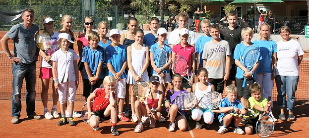 Unter der Regie von Matthias Voigt sowie den Jugendwartinnen Alexandra Wessely und Antje Kapell wurde jedem älteren, erfahreneren Spieler ein jüngerer Partner zugelost. 20 Minuten dauerte eine Runde, und die Paarung, die danach vorne lag, bekam ein Schleifchen. Bei der erneuten Auslosung kam es zu neuen Paarungen, und so sahen die Eltern spannende Spiele mit erstaunlichen Ballwechseln, bei denen die Älteren den Kleineren halfen, sich auf dem großen Platz zurechtzufinden. Am Ende waren sechs Schleifchen Rekord. Erspielt wurden sie von Justin Weinberg. Aber für alle gab es Preise wie zum Beispiel T- Shirts, Bälle, Griffbänder, und die Tennisfamilie konnte den schönen Spätsommertag auf der Anlage ausklingen lassen.