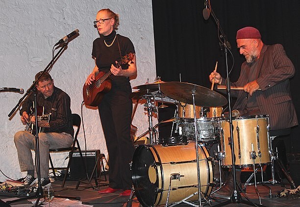 Das Trio Lahr beherrscht nicht nur die leisen Töne Das Trio mit Bernhard Sperrfechter (Gitarre u. Gesang), Barbara Lahr (Gesang und Bass) und Schlagzeuger Erwin Ditzner.(Foto:Wörner)(tw) Am Freitagabend gastierte auf Einladung des Kulturlabor Eberbach e.V. das Barbara Lahr Trio in der Galerie Artgerecht mit Stücken von ihrer neuen CD "Six String Call"