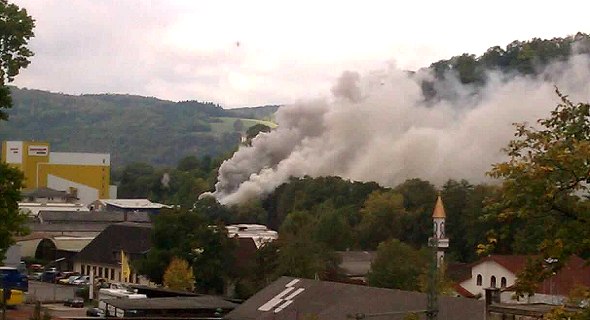 Großaufgebot der Feuerwehren konnte rauchintensiven Brand schnell eindämmen (Foto: privat)(lct) (pol) Aus noch ungeklärter Ursache ist es am Freitagvormittag, 28. September, in einem Firmengebäude in der Industriestraße in Mosbach zu einem Brand gekommen.