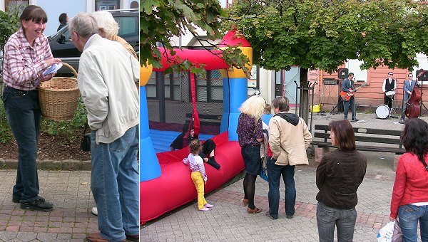 Live-Musik und Hüpfburg auf dem Leopoldsplatz (Fotos: Hubert Richter)(hr) Claudia Agnes Henn will bei der Wahl am 21. Oktober Bürgermeisterin von Eberbach werden. Heute Nachmittag lud die Kandidatin zu einer "Wahlparty" auf den Leopoldsplatz ein.