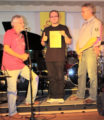 Maximilian Geller begann 2006 im Alter von zehn Jahren Schlagzeug zu spielen. „Max ist sehr talentiert, zuverlässig und extrem ehrgeizig“, sagt Philipp Köhler über seinen Schüler, den er seit vier Jahren betreut. Seit dieser Zeit spielt er in mehreren Ensembles der Musikschule und privaten Formationen. Bei "Music For Ewwer" stellte er seine Vielseitigkeit durch seinen Einsatz bei den unterschiedlichsten Besetzungen unter Beweis. Auch an diesem Vorspielabend war er bei mehreren Ensembles und sogar als Solist im Einsatz. „Maximilian, den Preis hast Du ehrlich verdient“, gab ihm Bernhard Sperrfechter, sichtlich gerührt, zu verstehen.