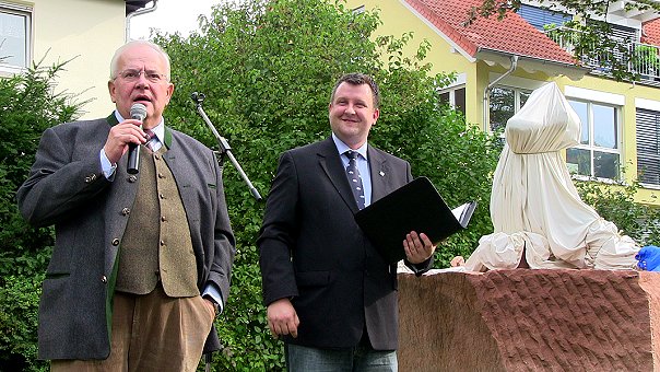 Zum Startbild (hr) In der Neckaranlage wurde heute Vormittag eine Bronzeskulptur enthüllt, die an den alten Handwerksberuf des Steinhauers erinnert. Gespendet wurde das Kunstwerk vom Bürger- und Heimatverein mit Unterstützung der Baufirma Michael Gärtner GmbH.