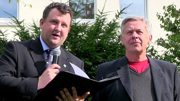 Ein Denkmal für einen staubigen Knochenjob V.l. Jens Müller und Künstler Dr. Hatto Zeidler. (Foto: Hubert Richter)Mehr Bilder (Klicken zum Vergrößern):