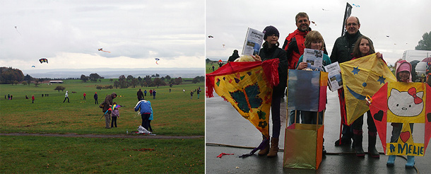 Drachenfreunde trotzen ungemütlichem Oktoberwetter Trotz unangenehmem Oktoberwetter waren zahlreiche Besucher mit Drachen gekommen. Die Kinder mit den selbst gebauten Drachen erhielten von den LSV-Verantwortlichen um den Vorsitzenden Paul Gurka (r.) Gutscheine für einen Rundflug bzw. Trostpreise. (Fotos: Hofherr)(hof) Bereits zum 19. Mal veranstaltete der Luftsportverein Hoher Odenwald (LSV) auf dem Segelfluggelände an der L 524 bei Mülben das Odenwälder Drachenfest. Zahlreiche wetterfeste Drachenfreunde jeden Alters waren am Sonntag trotz widriger Wetterverhältnisse mit Nieselregel, kaltem Wind und Nebel auf den Winterhauch gekommen um mit Flugobjekten jeder Größe, Form und Farbe den grauen Oktoberhimmel zu beleben.